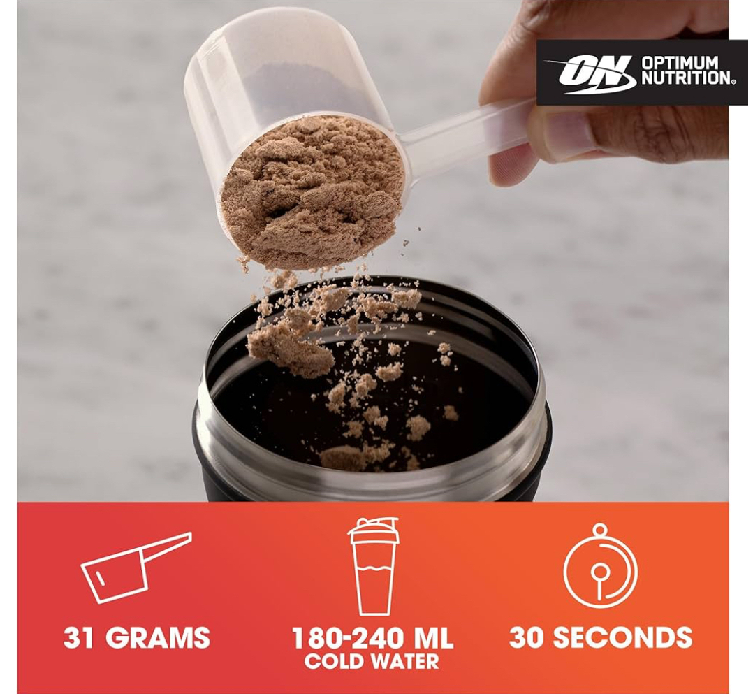 Gold Standard 100% Whey is best enjoyed first thing in the morning and/or during the 30 minutes just before or immediately after training. Simply mix one rounded scoop with 180-240ml of your favourite beverage in your ON shaker.