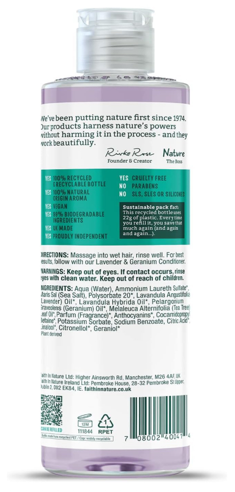 Massage the Lavender & Geranium Shampoo gently into wet hair, rinse thoroughly until hair is clean and repeat if required. For best results, follow with our Lavender & Geranium Conditioner.