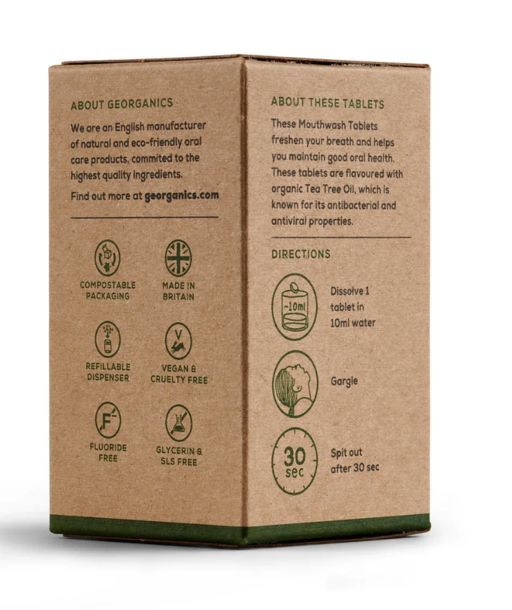 Free from synthetic ingredients and colourants, these Mouthwash Tablets help you maintain optimal oral health and keep your breath fresh. They last 7 times longer than a 500ml bottle of conventional mouthwash and save up approx 14 plastic bottles from landfill in a year. Flavoured with organic Tea Tree oil for its green, herbal aroma and antiviral properties.