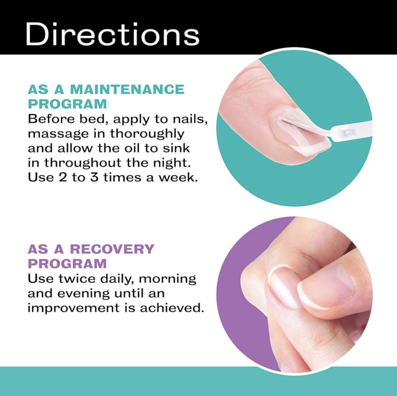 As an intensive treatment: For damaged nails, it may be used morning and evening until the condition is restored.