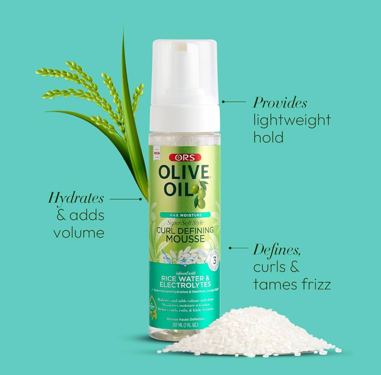 Define and enhance your curls with ORS Olive Oil Style Curl Defining Mousse - a formulation infused with Rice Water and Electrolytes for maximum moisture and super soft hair.