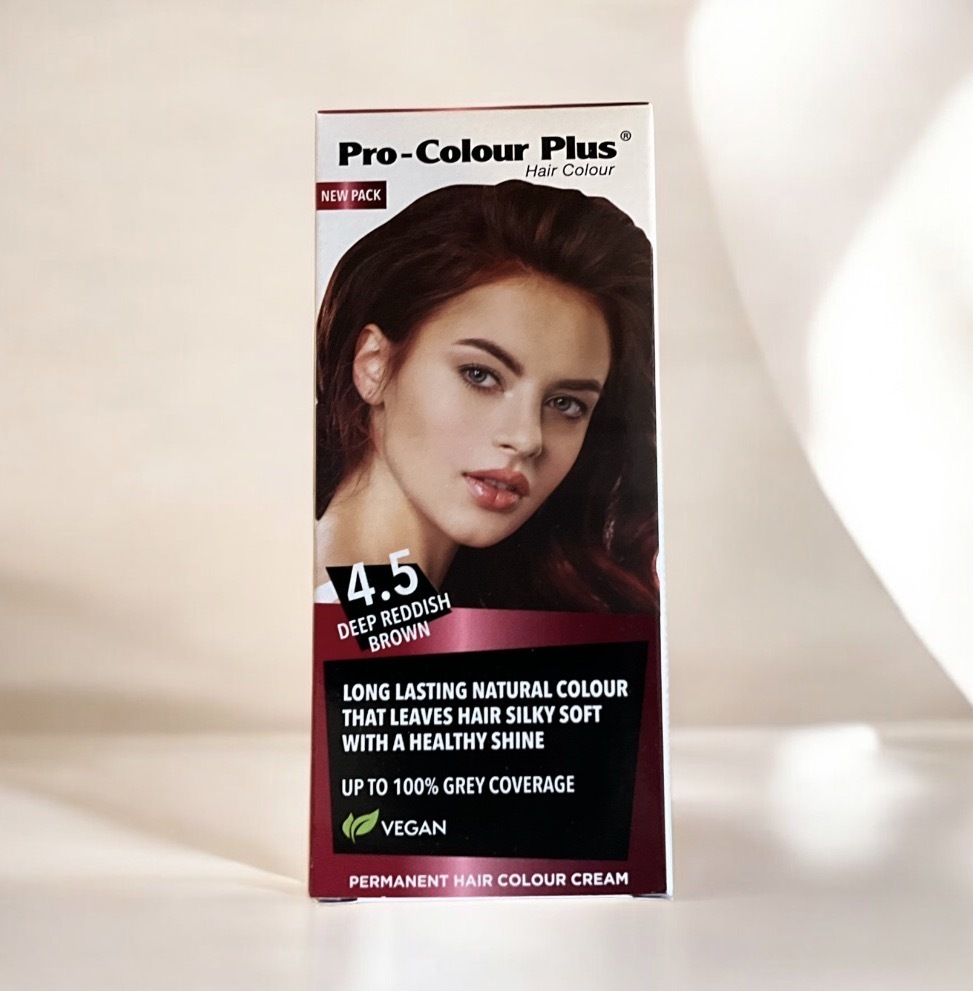 PRO - COLOUR PLUS HAIR COLOUR is specially formulated with Transcutol, a patent of Gattefosse, France. It helps the colourant penetrate the hair deeper and enhance the colour stability. It covers up to 100% of grey hair and guarantees long lasting colours.