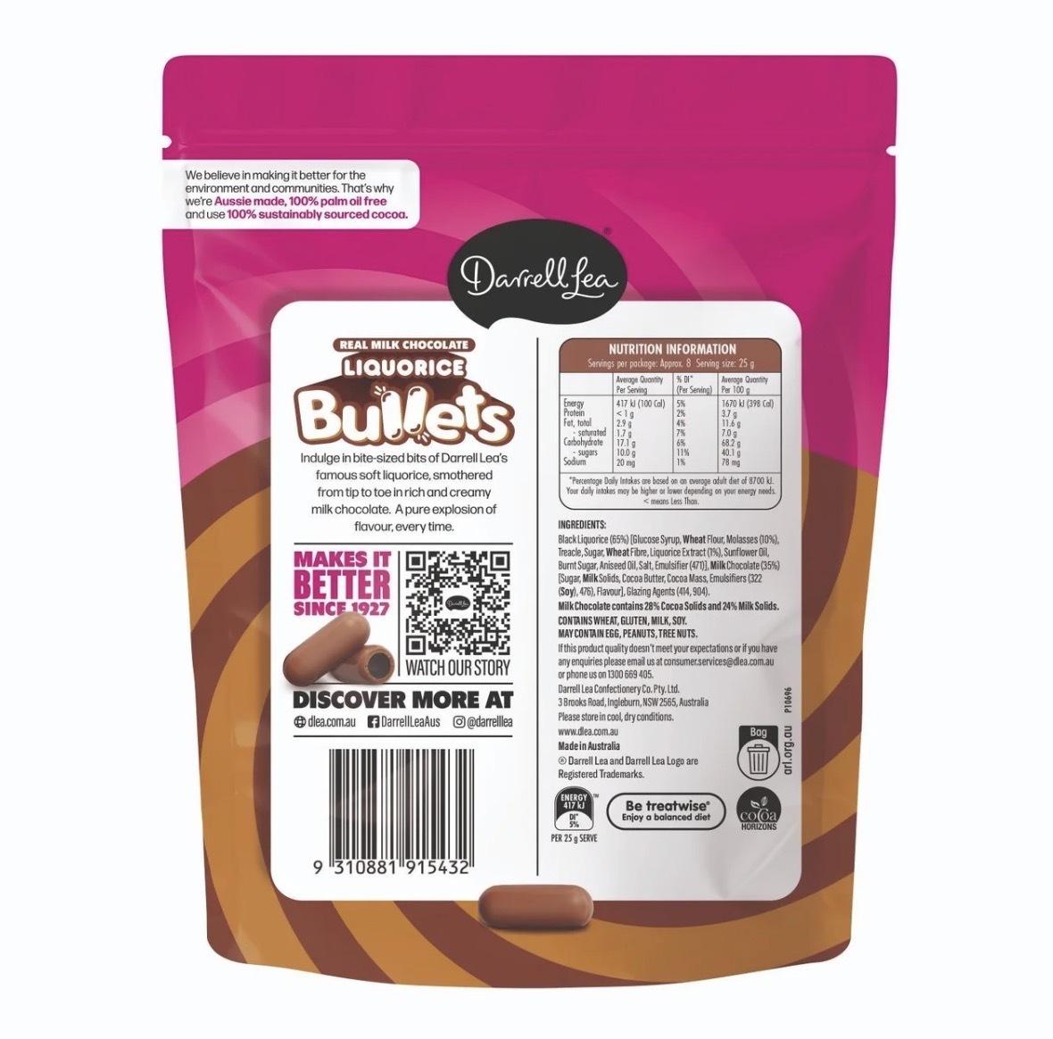 Whether you’re sharing a bag during movie night or looking for a premium afternoon pick-me-up, these "bullets" deliver a rich, nostalgic flavour that has made Darrell Lea a confectionery favourite since 1927.