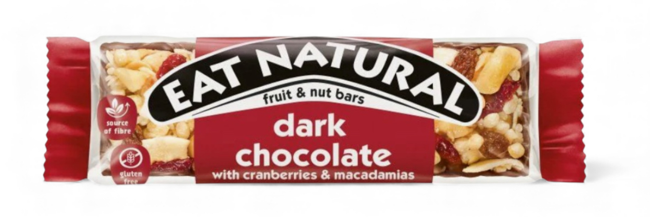 Shredded Coconut 21%, Dark Chocolate 20% (Cocoa Mass, Sugar, Cocoa Butter, Emulsifier: Soya Lecithin), Sultanas 16% (Sultanas, Sunflower Oil), Glucose Syrup, Crisped Rice (Rice Flour, Rice Bran, Sugar), Dried Cranberries 8% (Sugar, Cranberries, Sunflower Oil), Honey, Macadamia Nuts 6%