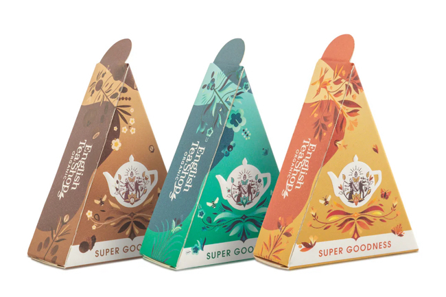 These pyramid tea bags are made from soilon, making them biodegradable and eco-friendly.