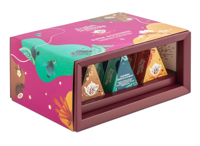 Featuring 12 pyramid tea bags, each bursting with natural goodness. Explore the tartness of "Cranberry, Hibiscus & Rosehip," where organic hibiscus and rosehip harmonise with lemongrass and ginger. Indulge in the rich "Mate, Cocoa & Coconut," a blend of organic yerba mate, cacao, ginger, and coconut. And savour the warmth of "Ceylon Cinnamon," crafted with organic cinnamon, ginger, and cardamom.