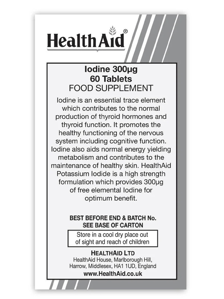 Iodine contributes to normal production of thyroid hormones and normal thyroid function. It also contributes to normal cognitive function and energy-yielding metabolism, normal cognitive function, and normal functioning of the nervous system. Potassium Iodide is a formulation that provides 300µg of free elemental Iodine for optimum benefit.