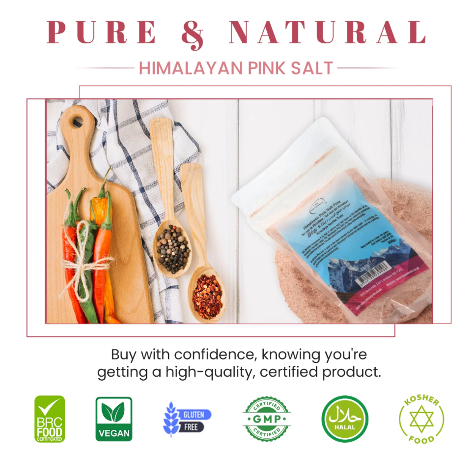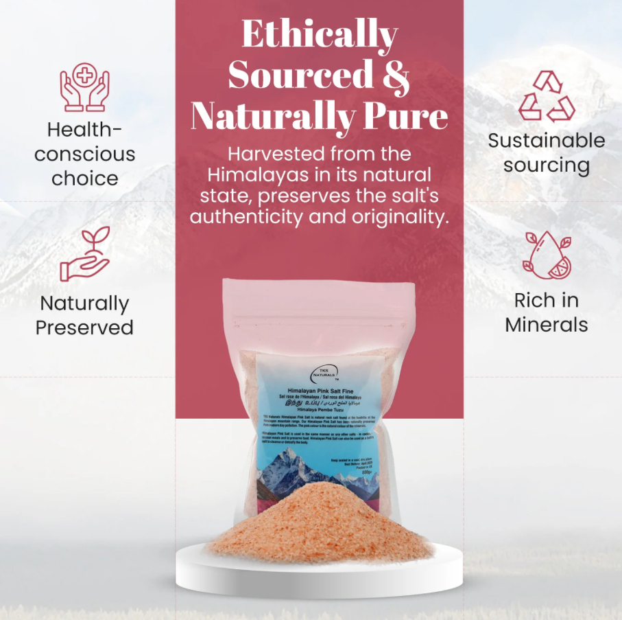 Elevate your culinary creations and improve your well-being with TKS Premium Himalayan Pink Salt. Experience the difference between nature's purity and health benefits in every sprinkle.