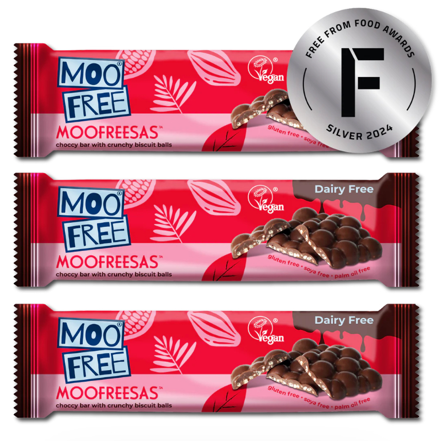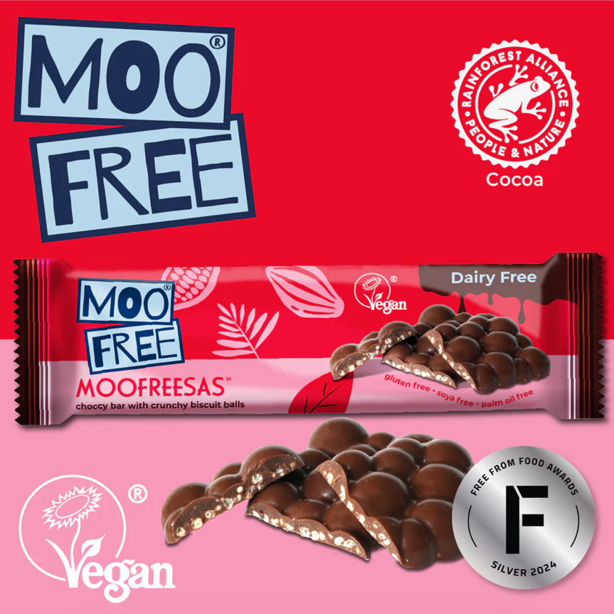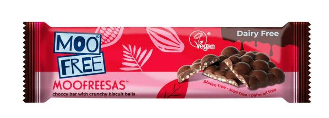 Just like all our chocolates, our Moofreesas bars are completely dairy-free, gluten-free, soya-free, and vegan-friendly. They're made in our UK factories, where we steer clear of all 14 major food allergens.