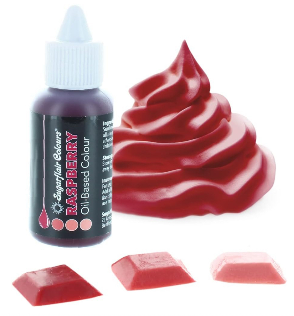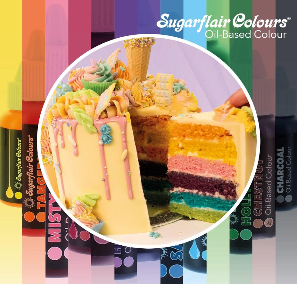 Sugarflair oil based colours are the UK's answer to colouring fats and oils used in baking and decorating! Perfect for adding vibrant and pastel colours to chocolate, buttercream, cake batter and sugar pastes but will also work in flower paste, modelling paste, royal icing, marzipan, pastry and much more.