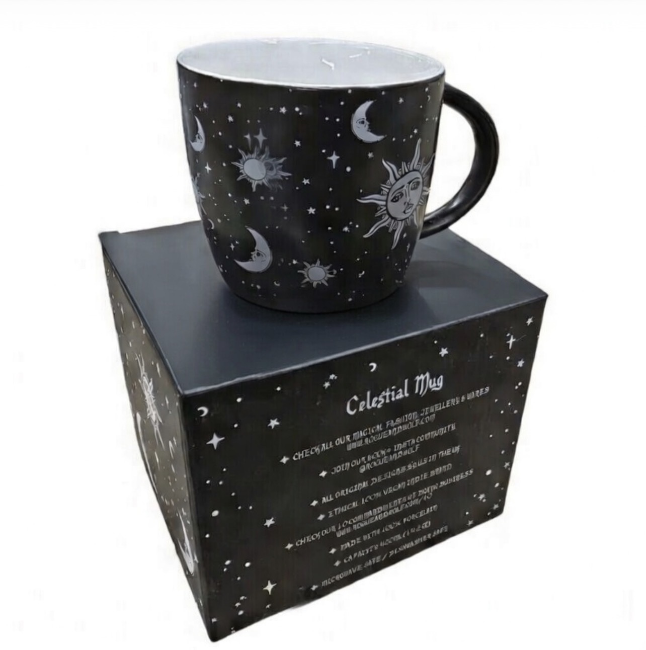 Holding a generous 420ml (14.2 oz), this mug is as functional as it is mystical—completely microwave and dishwasher safe. Whether you are looking for the perfect gothic gift, adding to your wiccan altar, or simply elevating your morning ritual, this mug arrives in a beautifully designed celestial gift box, ready to enthral any fan of astronomy, astrology, or the macabre.