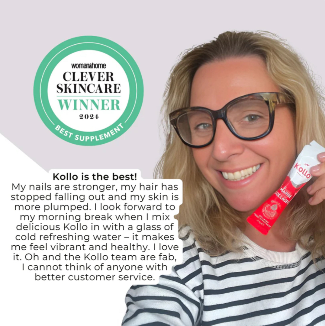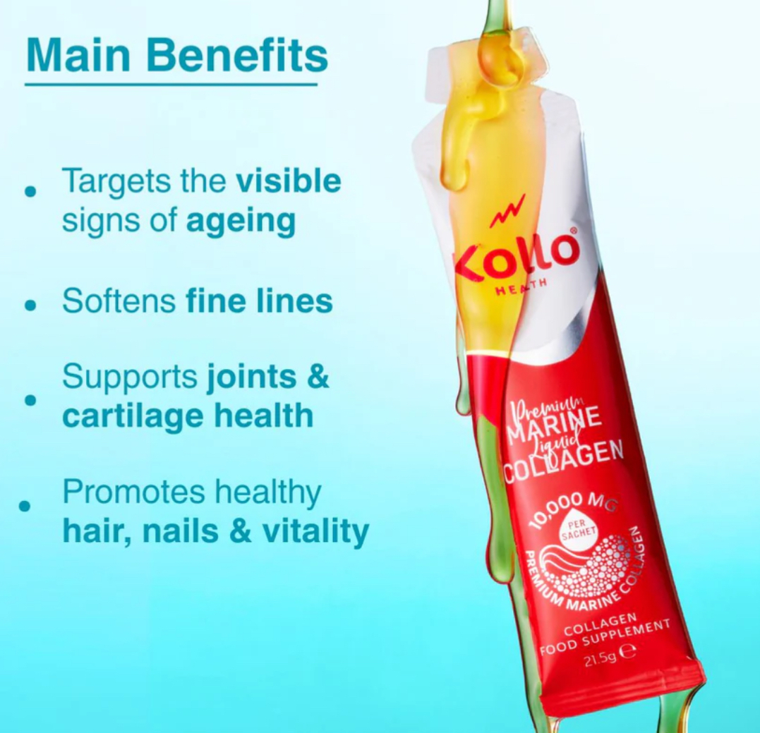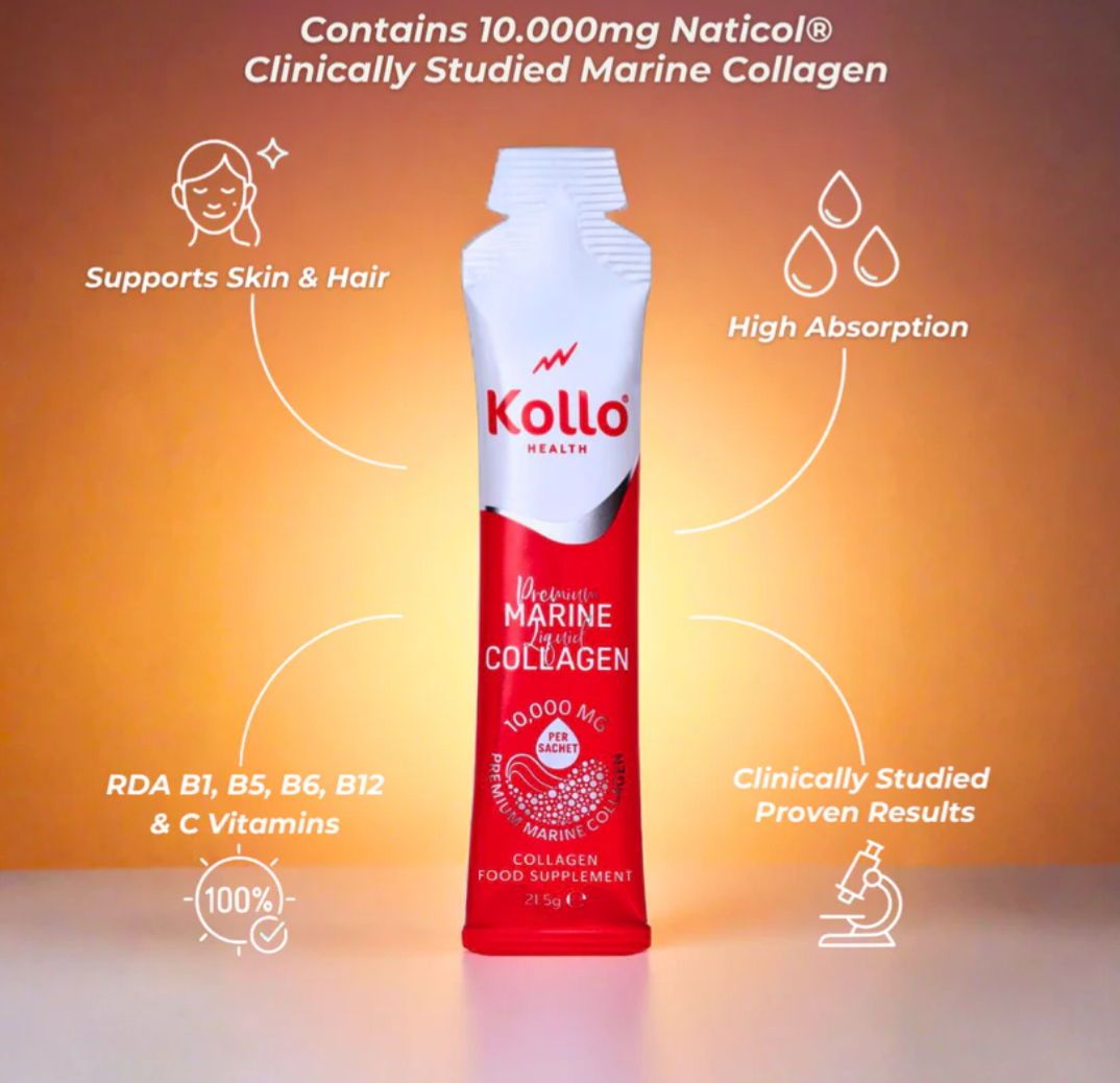 Clinically validated and trusted by over 20,000 customers, Kollo delivers 10,000 mg of premium Naticol® marine collagen peptides in every daily sachet. Enhanced with 100% RDA of B1, B5, B6 & B12 vitamins for energy and focus, as well as vitamin C to support collagen formation. Backed by scientific research and optimised for fast absorption, proven to deliver visible results for smoother skin, stronger hair, nails, and improved joint comfort.