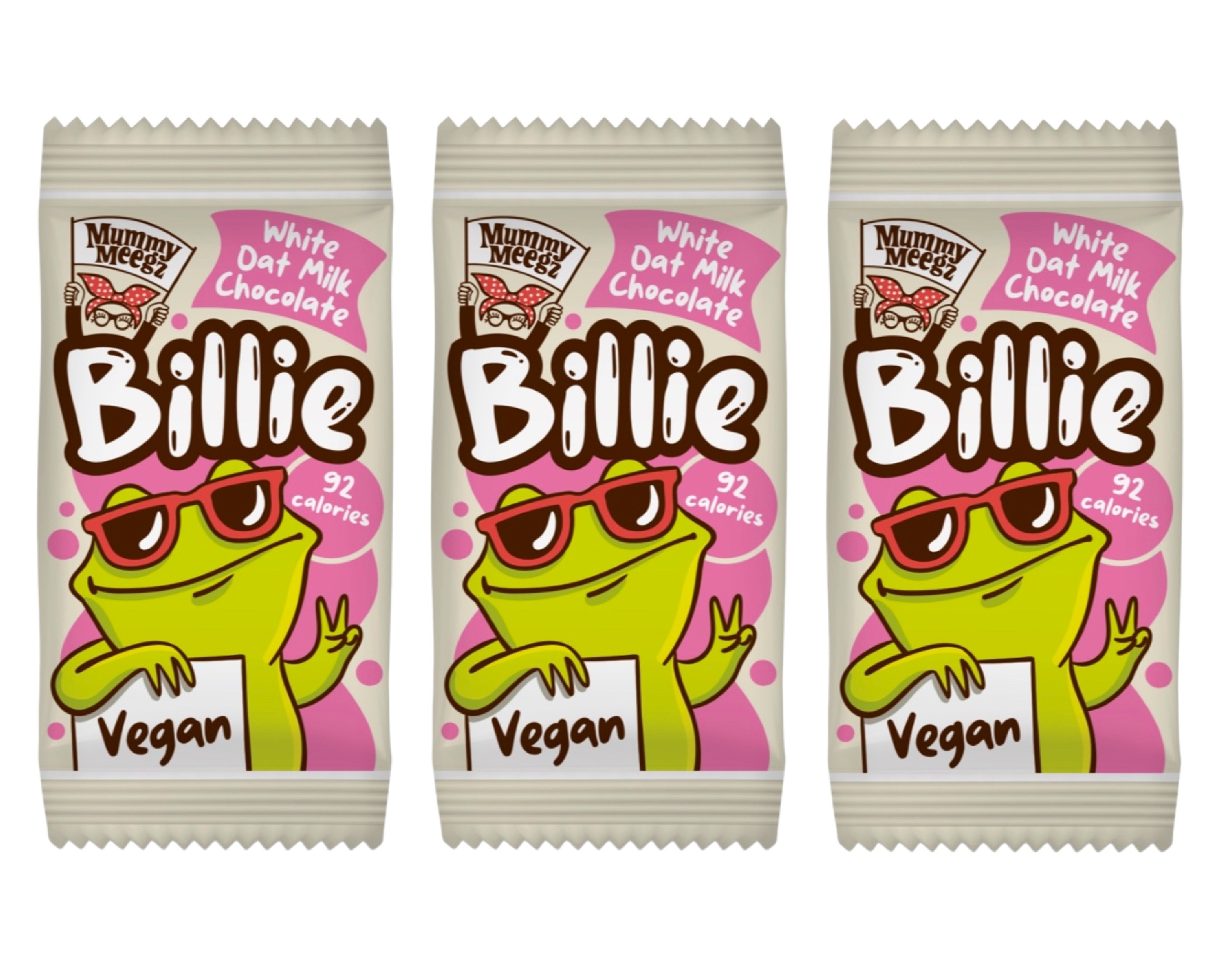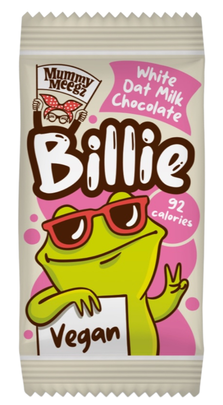Say hello to Billie, the frog-tastic oat milk chocolate snack bar from Mummy Meegz.