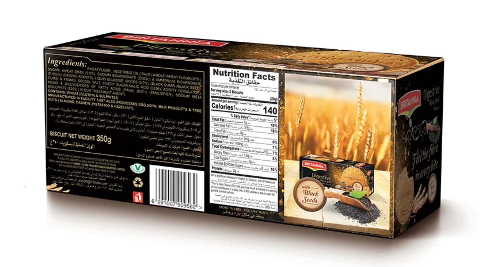 Wheat Flour, Vegetable Oil (Palm), Sugar, Whey Powder & Skim Milk Powder (From Cow’s or Buffalo’s Milk), Spices (Black Cumin, Cumin & Fennel Seeds), Salt, Dry Gluten, Yeast, Fungal Alpha Amylase (E1100) & Lipase (E1104) (Flour Treatment Agent & Flavour Enhancer), Mono & Diglycerides of Fatty Acids (Palm) (E471), Ascorbic Acid (E300) (Antioxidant).