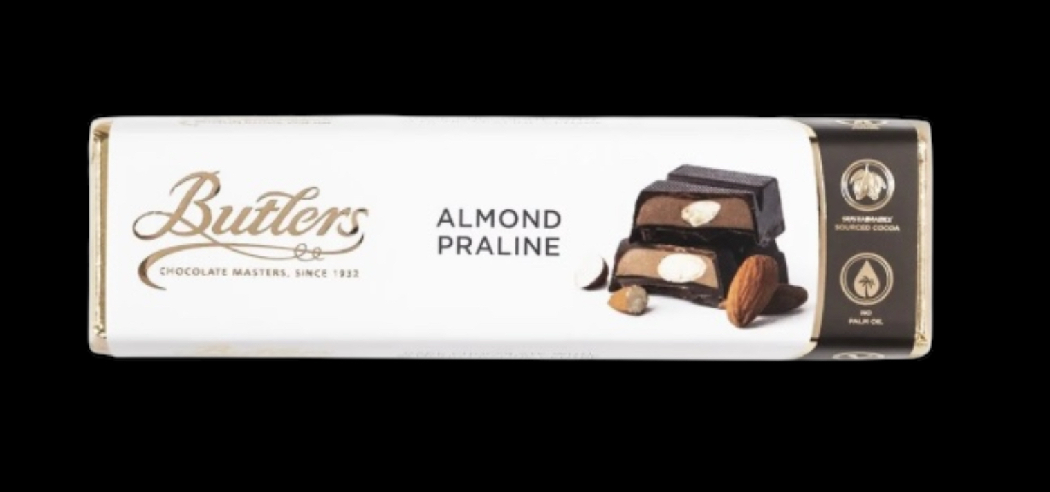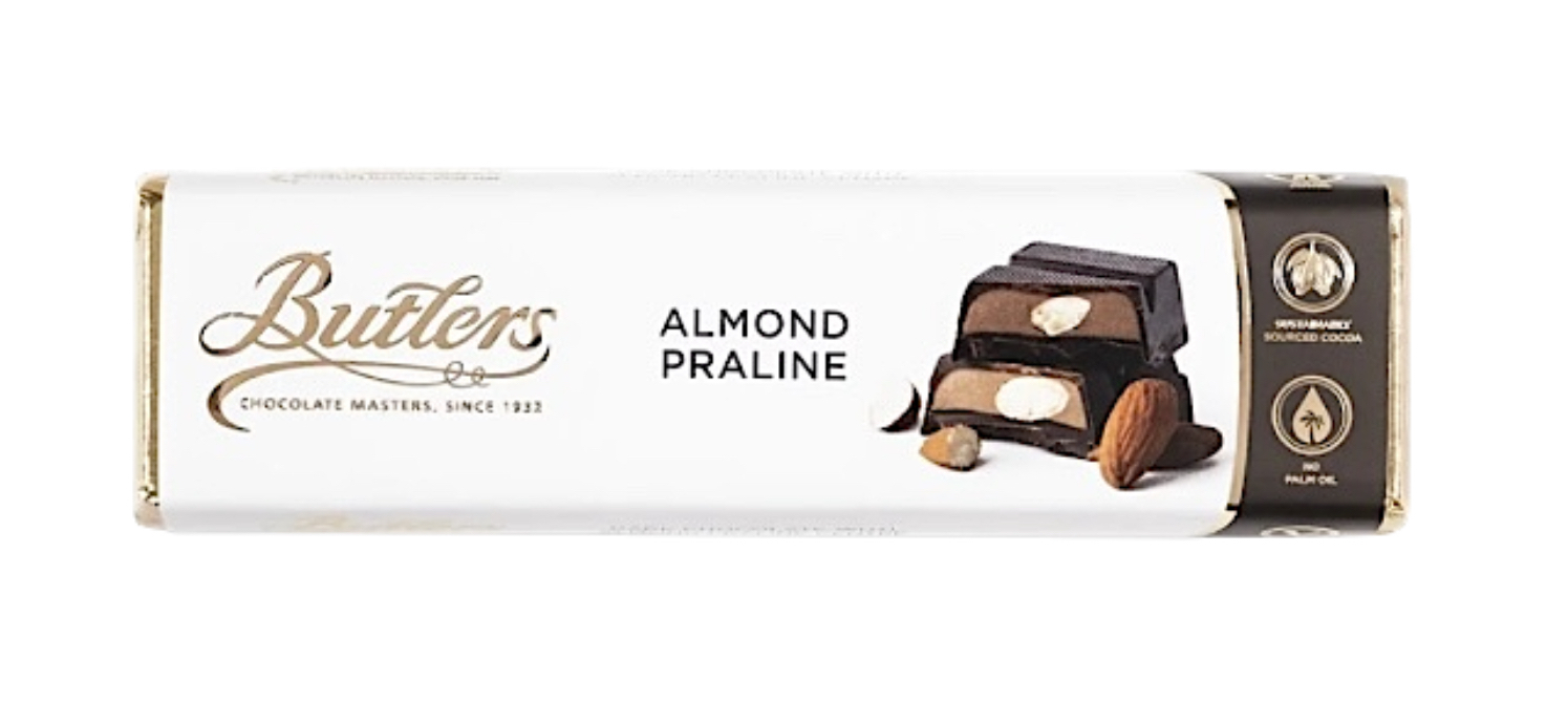 75g Almond Praline Bar Ingredients: Sugar, cocoa mass, almonds (nuts) (18%), cocoa butter, whole milk powder, sunflower oil, emulsifier: soya lecithin, natural flavouring (vanilla). (Plain chocolate contains: 58% cocoa solids minimum. Milk chocolate contains: 32% cocoa solids minimum, 20% milk solids minimum). Please store in a cool, dry and odourless place.
