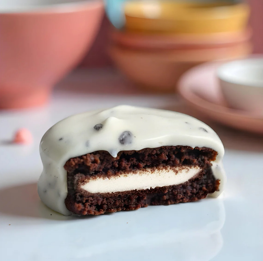These white chocolate cookies are filled with milky cream and glazed with the most delicious white chocolate, with no added sugar