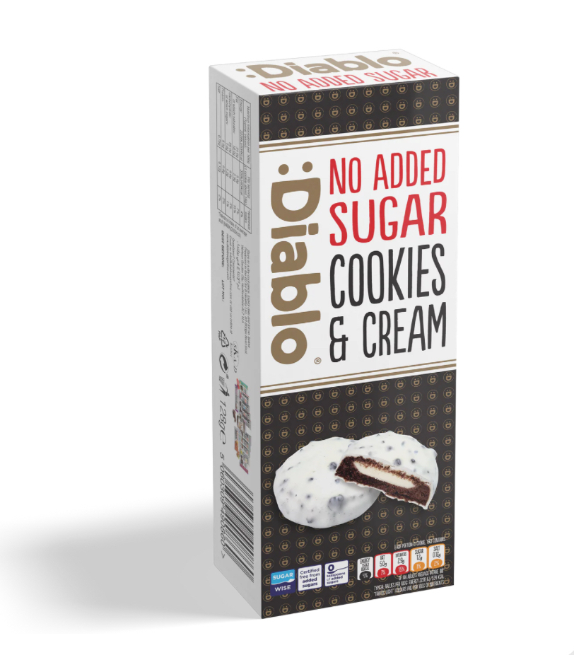 White chocolate-flavour glaze no added sugar 27% [maltitol vegetable fats (palm kernel oil, palm oil), whole milk, skimmed milk, soy lecithin), aroma], milk-flavour cream no added sugar 25% [maltitol , vegetable fats (palm oil, palm kernel oil), rapeseed oil, sweet whey powder (from milk), skimmed milk, aroma,], wheat flour, vegetable fats (coconut oil, rapeseed oil), maltitol, fat-reduced cocoa, maltitol, fat- reduced cocoa, leavening agent: sodium bicarbonate, salt.