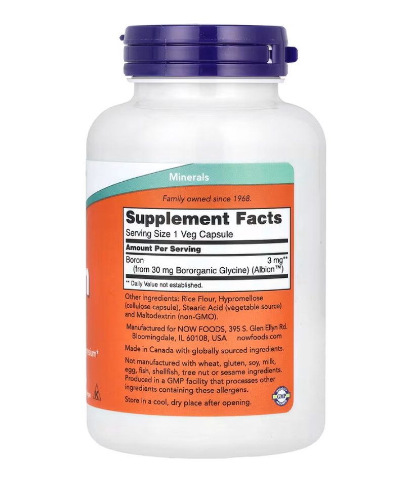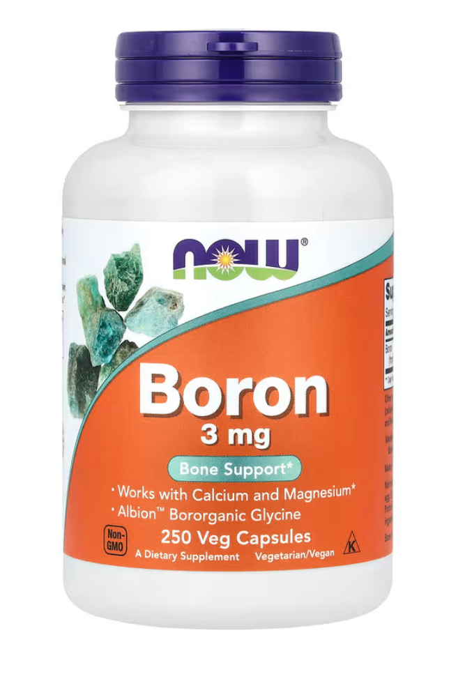 Boron is a biologically active trace mineral that affects calcium, magnesium and phosphorus metabolism. Boron is known to support bone strength and structure.
