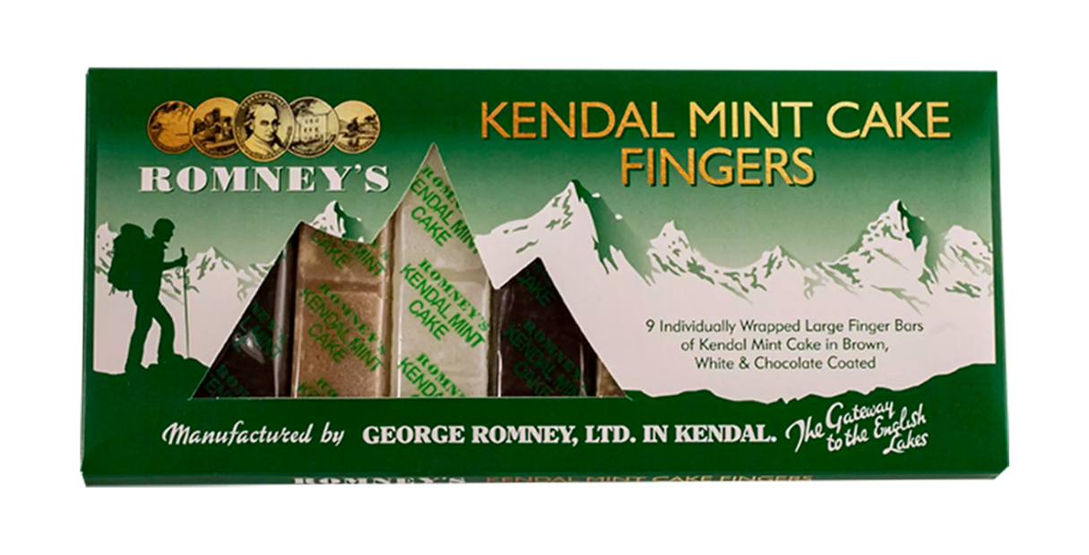A Nine individually wrapped finger bars of 2023 Great Taste Award-Winning White Kendal Mint Cake, Brown Kendal Mint Cake & chocolate coated Kendal Mint Cake.