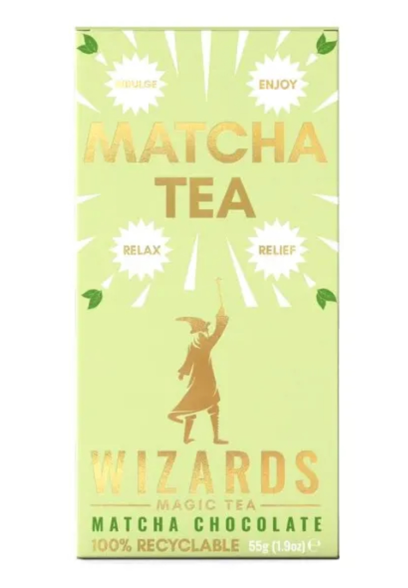 Each matcha flavoured bar of The Wizards Magic Tea Chocolate is infused with one gram of matcha powder which contains 70mg of caffeine, perfect for a little invigorating boost without the need for a Pepper Up Potion!