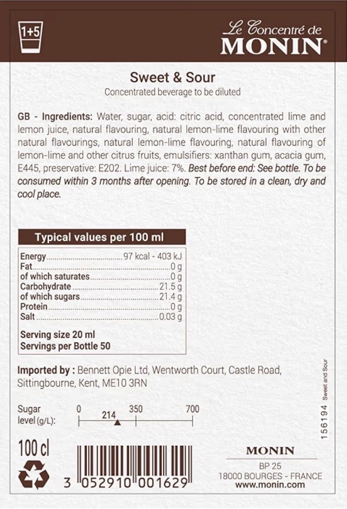 Master the art of the perfect sour with Monin Sweet and Sour Mix.
